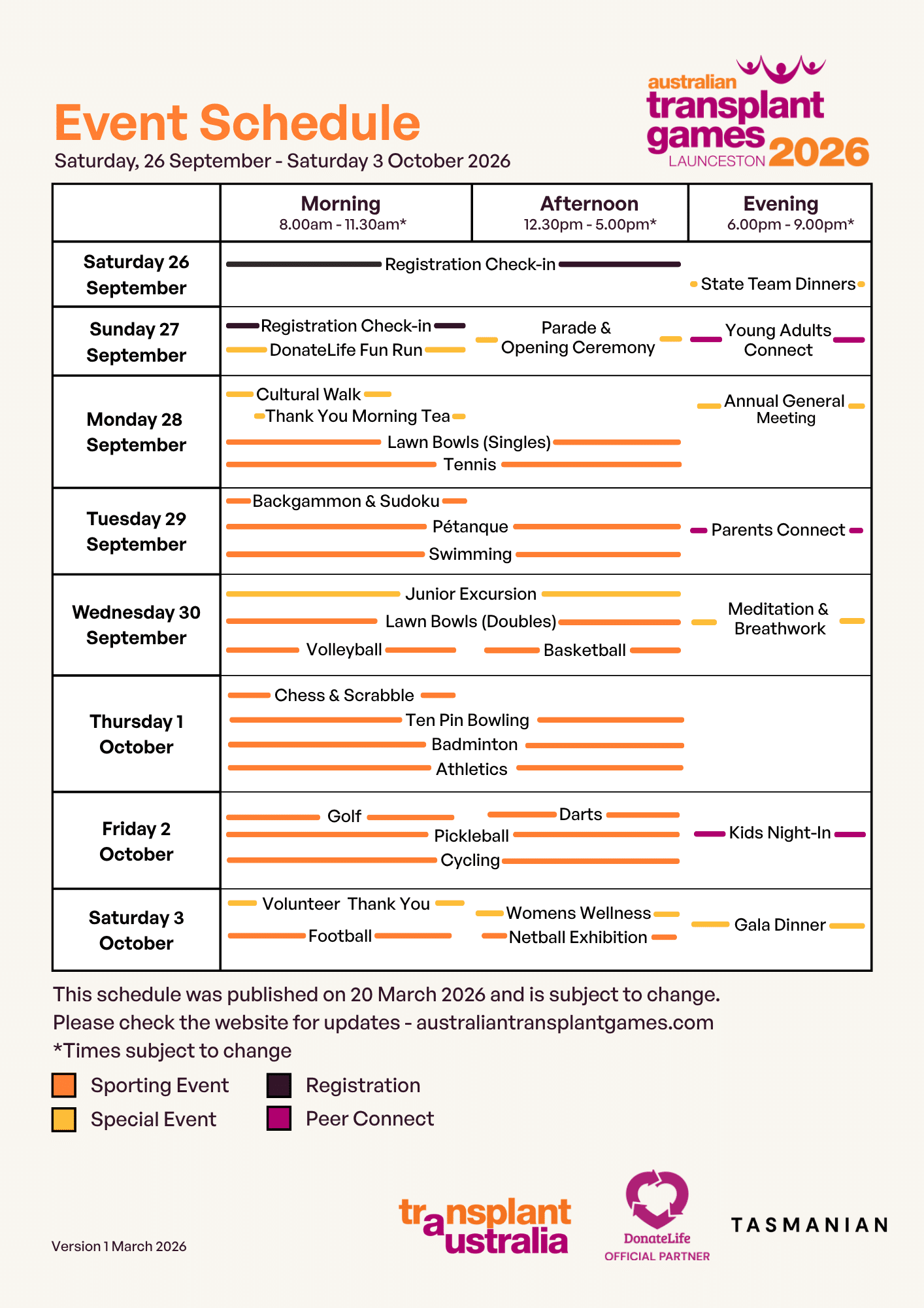 Please refer to the eligibility page for details as to what sports and subsequent events are open to various registration categories and ages.